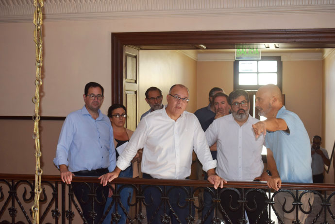 Acompañaron al ministro los subsecretarios de Obras Públicas, Antonio Portel y de Coordinación. Miguel Arismendi; el titular de la DPO, José Matzner; y la directora técnica del teatro, María Marta Vizcaíno, en representación del Instituto de Cultura.
