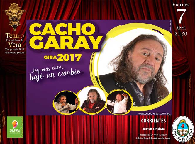 El viernes 7 de abril a las 21:30, subirá a las tablas centenarias, el humorista Cacho Garay con su espectáculo “Toy mas loco, bajé un cambio”.