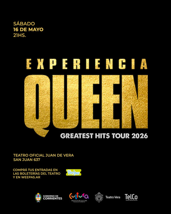 El próximo sábado 16 de mayo a las 21, el escenario del Teatro Oficial Juan de Vera se transformará para recibir a Experiencia Queen, un show que promete revivir los grandes éxitos de la legendaria banda británica con una fidelidad deslumbrante.