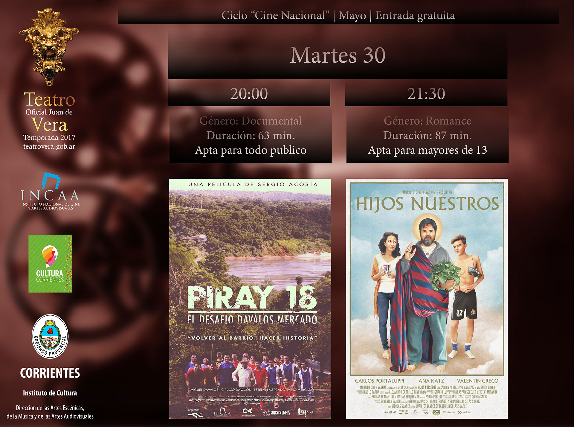 Para finalizar el mes de cine, el martes 30 de mayo a las 20 horas se presentará un documental dirigido por Sergio Acosta que en 63 minutos y con una calificación apta para todo público, introduce a sus espectadores en un ritual misionero que se realiza en dicha provincia, Piray 18. Una tradición que lleva quince años. Dos familias: los Dávalos y los Mercados y una cita ineludible, un partido de futbol todos los años en diciembre. La única condición, que cada equipo esté conformado por integrantes de cada familia.
