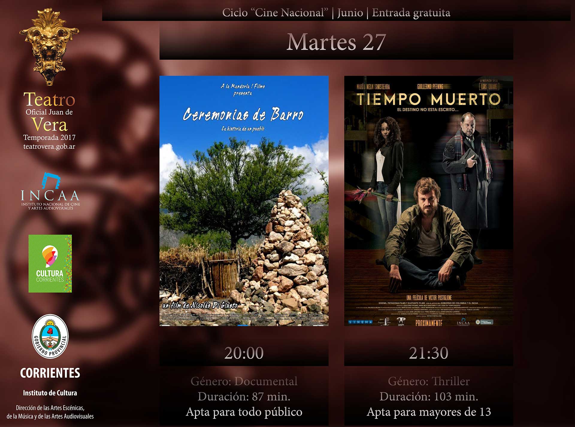 Son dos fechas para el Ciclo de Cine del Teatro Vera de los martes y con entrada gratuita. Tal como se implementó a partir de esta 11ra. edición de cine, con función doble que contempla un documental a las 20:00, y película a las 21:30.