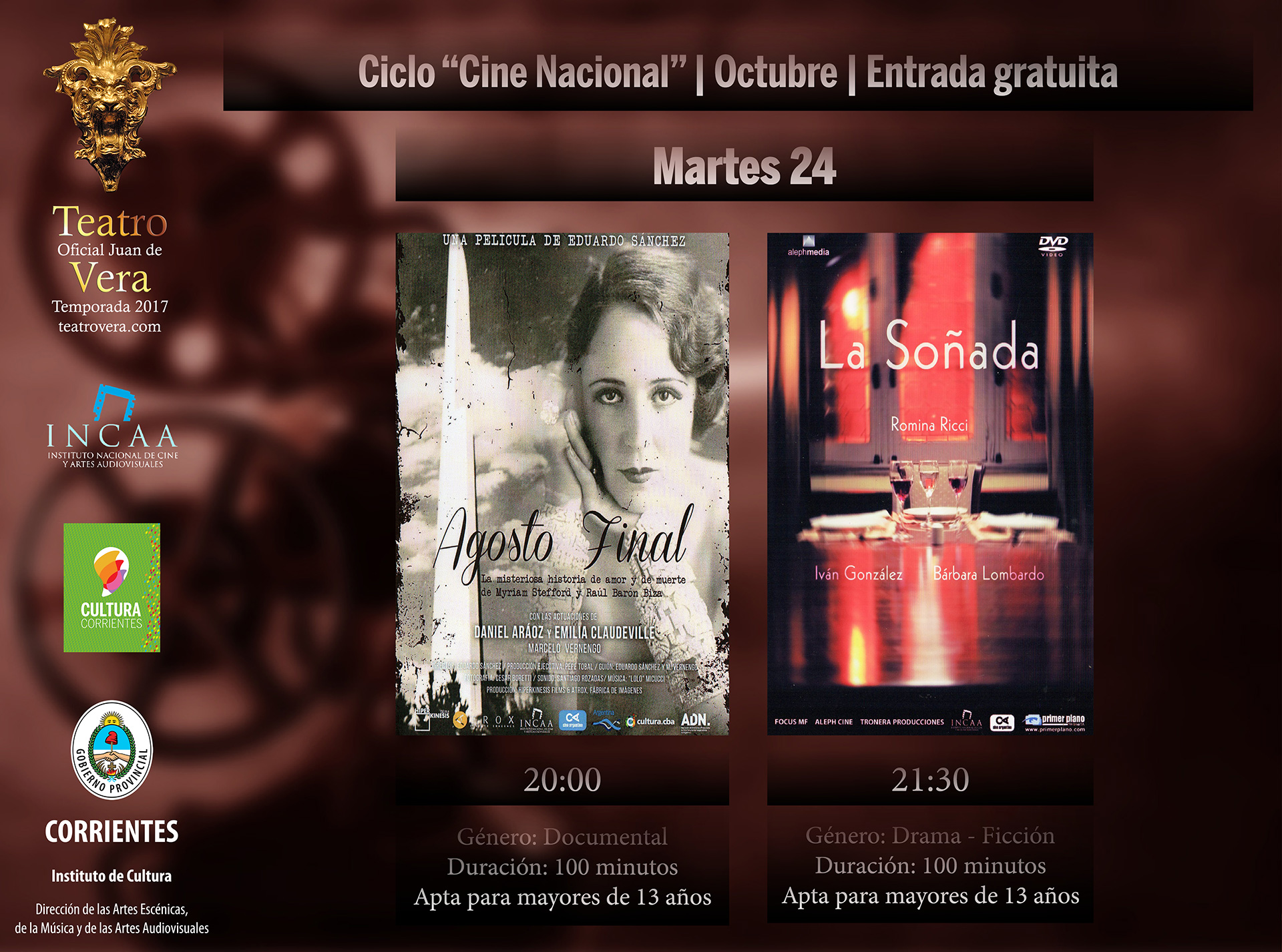 El ciclo es desarrollado por la Dirección de Artes Escénicas Música y Artes Audiovisuales dependiente del Instituto de Cultura. La grilla de cintas es la siguiente: el Martes 3 se proyectará “La segunda muerte”.