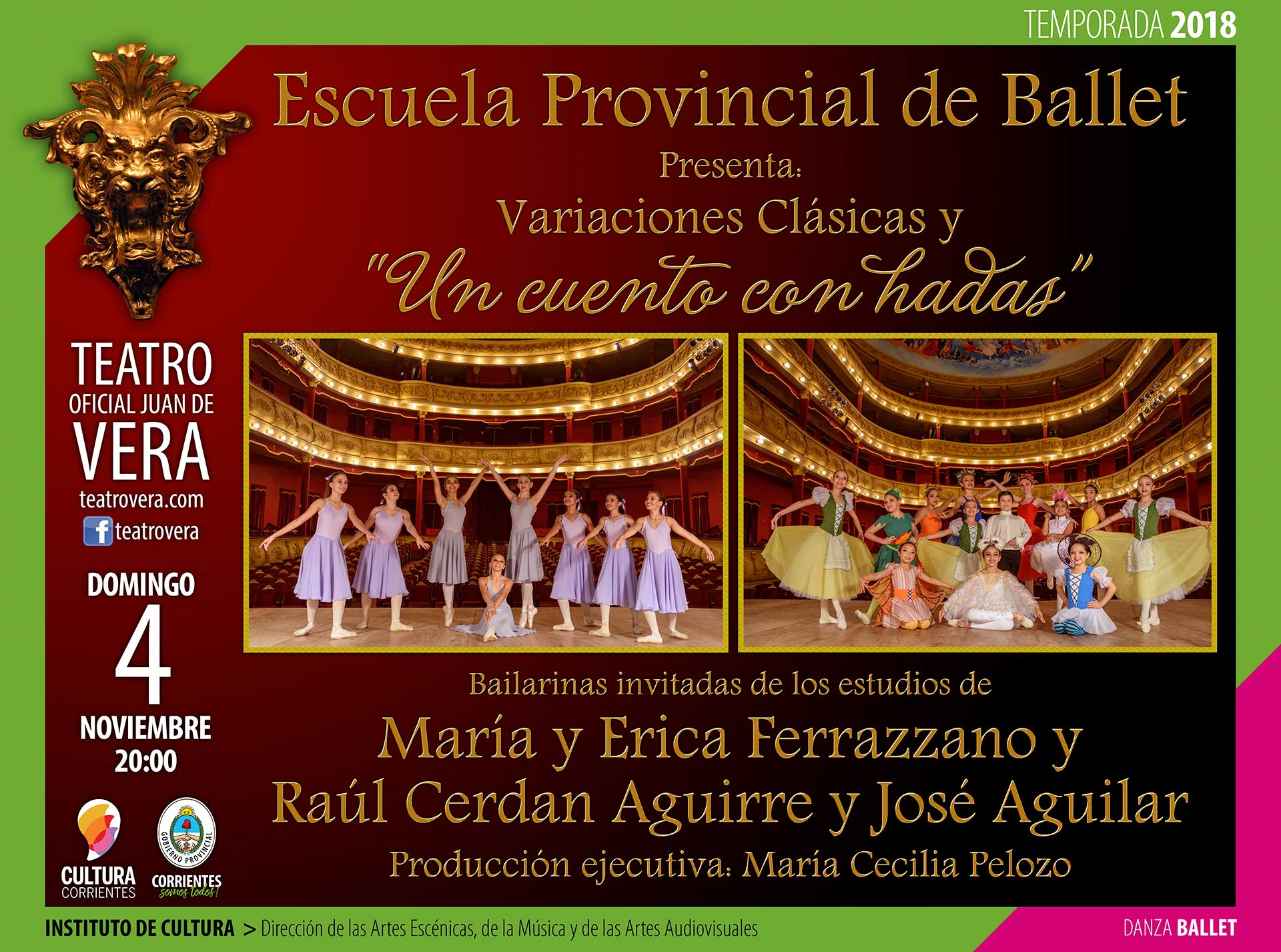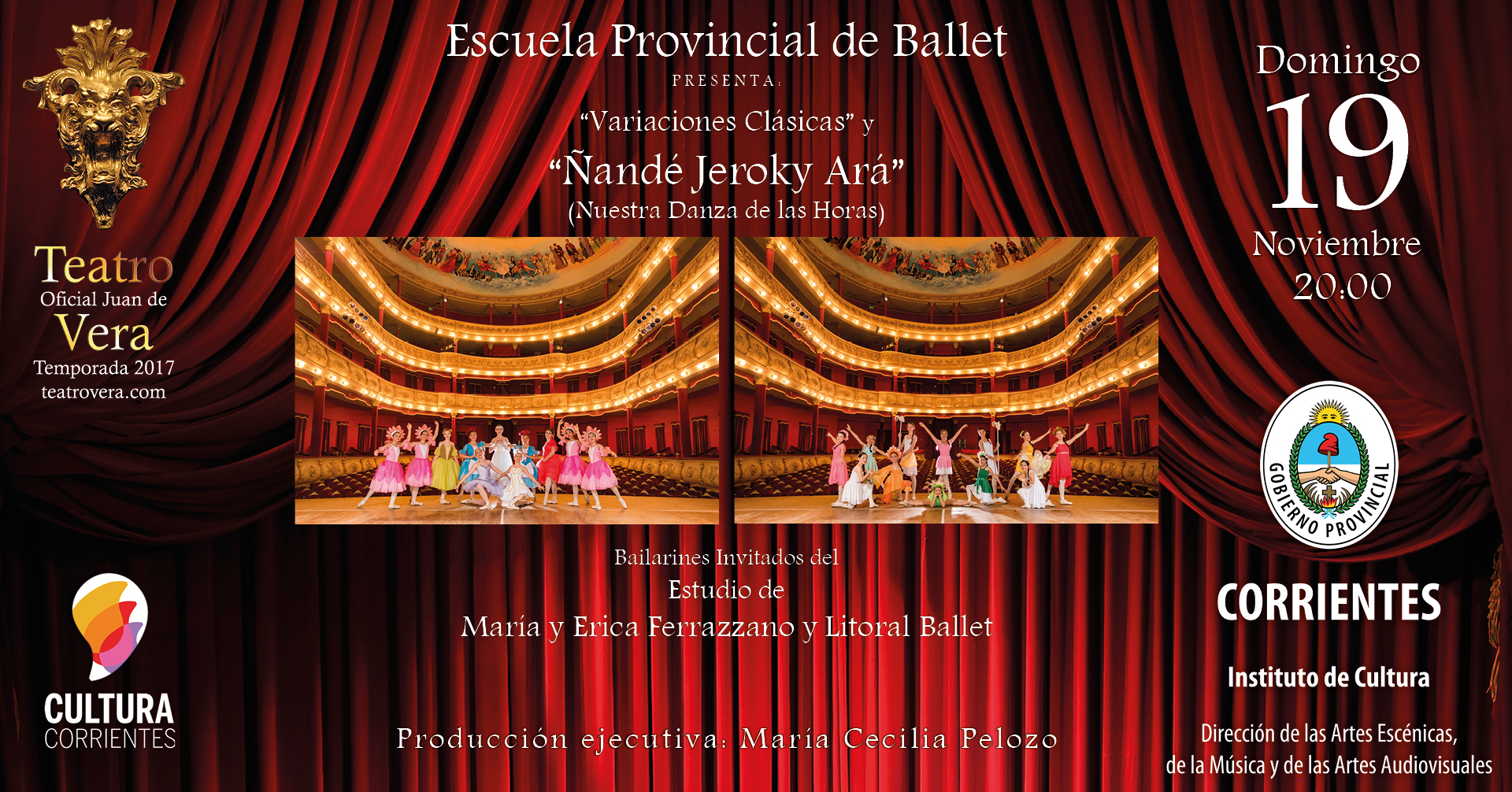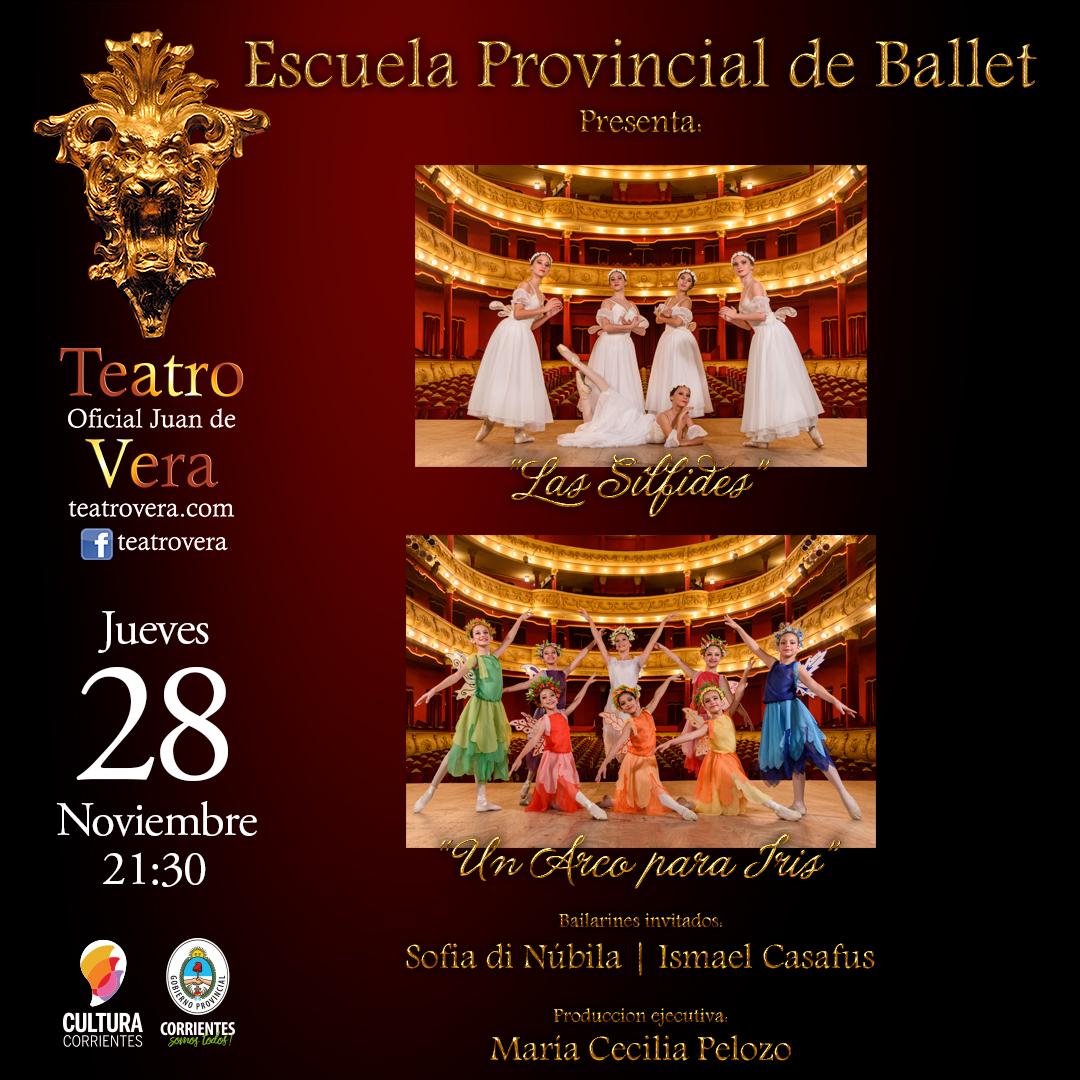 La Escuela Provincial de Ballet del Teatro Vera, presentará su Gala de Fin de Año, el jueves 28 a las 21:30, con un programa clásico, de excelencia y el estreno, de “Un Arco para Iris”. para esta función se contará con la participación de una bailarina premiada, Sofía di Núbila del Estudio de Érica y María Ferrazano.