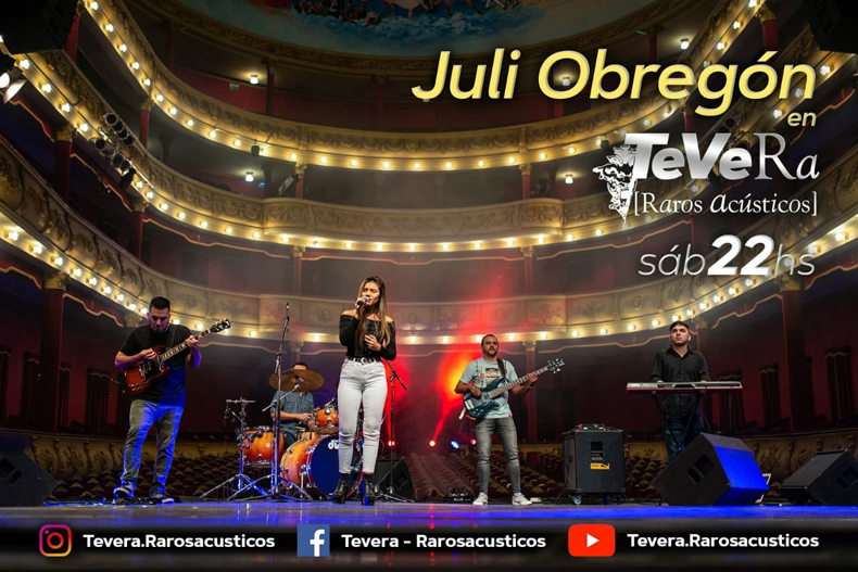 El próximo estreno de “TEVERA - Raros Acústicos”, será el sábado 27 a las 22 horas, por 5TV, y por las distintas redes sociales, tanto del gobierno como los medios periodísticos interesados en su difusión. En esta oportunidad, subirá al escenario del Vera, junto a Luis Moulín, la joven cantante e influencer, Julieta Obregón.