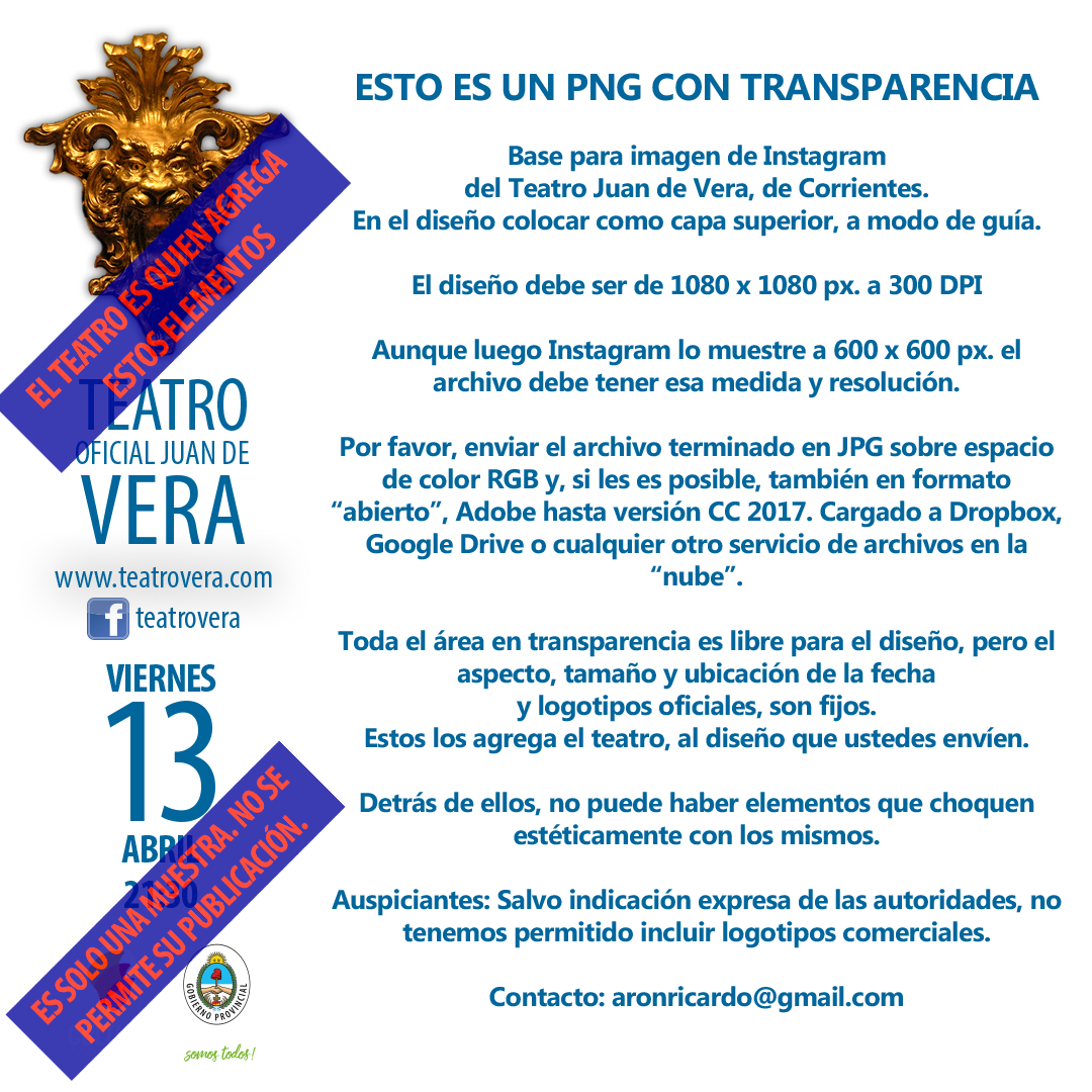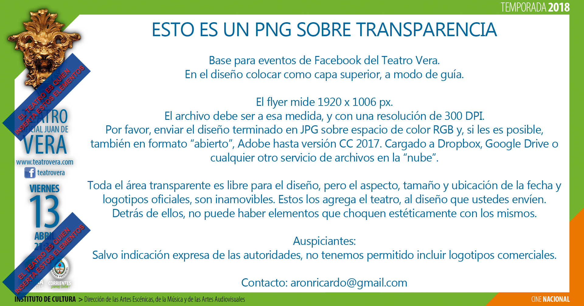 - Toda el área en transparencia es libre para el diseño, pero el aspecto, tamaño y ubicación de la fecha y logotipos oficiales, es inamovible. Estos los agrega el teatro, al diseño que ustedes envíen. Detrás de ellos, no puede haber elementos que choquen estéticamente con los mismos.