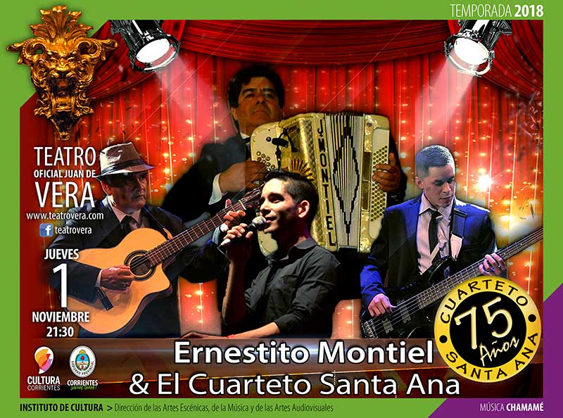 Celebrando los 75 años de existencia del insigne Cuarteto Santa Ana, se realizará en este teatro, un espectáculo musical chamamecero, con la actuación de Juan y Ernestito Montiel y su Cuarteto Santa Ana, además de artistas invitados. La velada será el jueves 1 de noviembre a las 21:30.