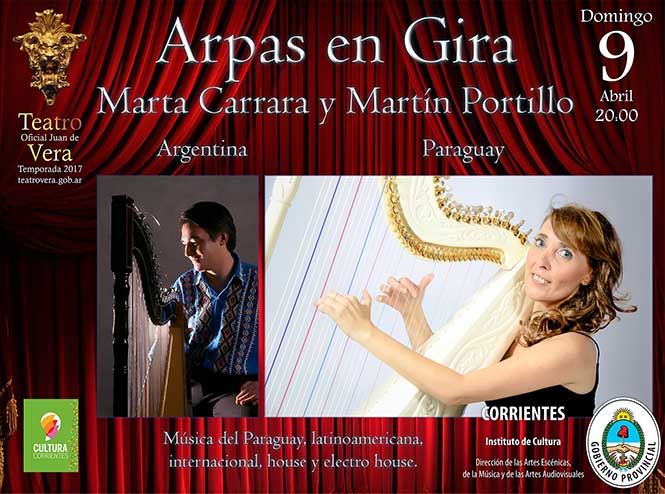 Dos virtuosos del Arpa, tras mucho girar por el mundo se presentarán en ésta sala para hacernos disfrutar de la belleza, versatilidad, energía y dulzura del instrumento, recorriendo la música del Paraguay, latinoamericana e internacional con melodías house/lounge y electro house.