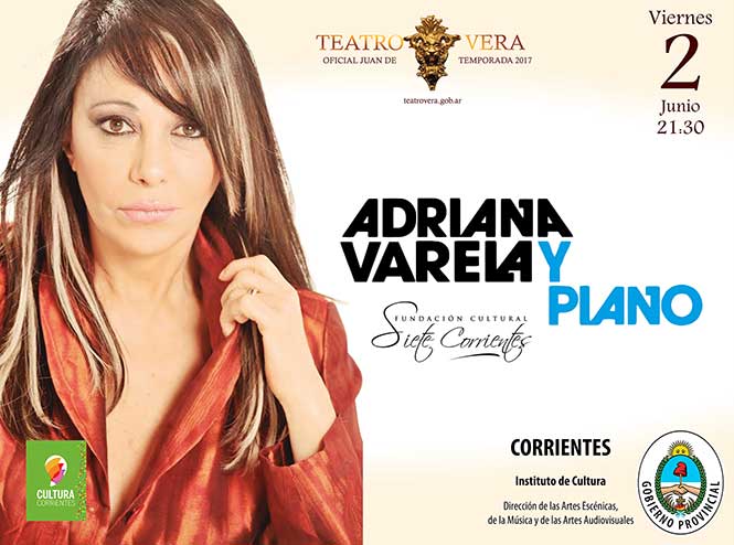 En co-producción de la Fundación Cultural Siete Corrientes y el Teatro Vera, se llevará a cabo la presentación de la cantante Adriana Varela el viernes 2 de junio a las 21:30 con entradas desde $300