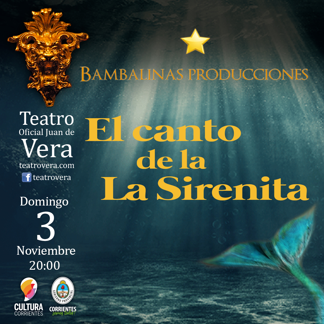 En esta temporada, Bambalinas celebra su 20 Aniversario en el escenario del teatro Vera, donde desde sus comienzos presenta cada fin de año un musical, con la participación de las Troupes de Niños y Adolescentes. Más de setenta actores darán vida a la dicha historia, llevándonos a un colorido recorrido por el fondo del mar, recreando conocidas canciones en situaciones que se balancean entre lo hilarante y lo dramático, a través de los entrañables personajes que acompañan a Ariel, en la búsqueda de su verdadera identidad.